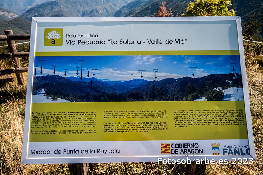 Para ir al mirador debemos pasar el pueblo de Fanlo en dirección al pueblo de Buisán. La carretera al pueblo de Buisán no está bien marcado. Pasaremos el pueblo de Fanlo por arriba, y al final, seguiremos la carretera asfaltada, donde se nos marca en un cartel que hay una barrera. Pasaremos la barrera. Seguimos esa carretera unos cuantos metros hasta que veamos el cartel del mirador, en la parte derecha. Hay un pequeño ensanche a la izquierda para dejar el coche.